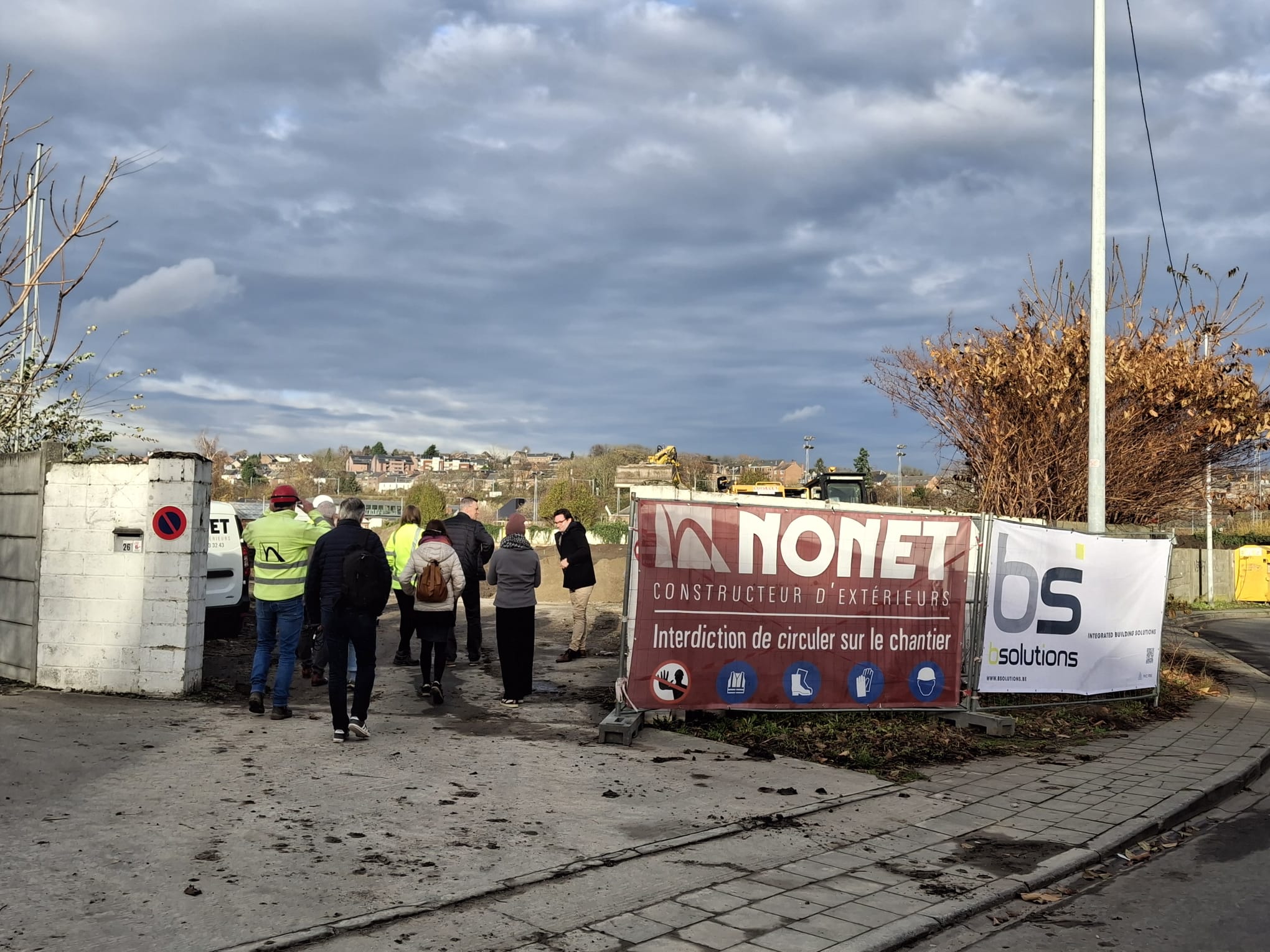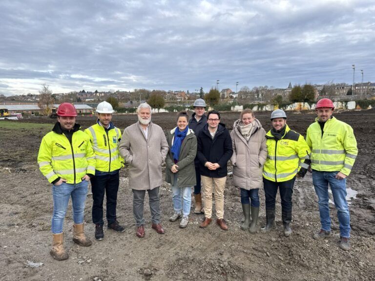 Le premier coup de pelleteuse était officialisé par Madame la Bourgmestre faisant fonction Charlotte Bazelaire, en présence des responsables du BEP (Maître d’Ouvrage), d’Easyfair (gestionnaire du site) et de nos partenaires d’équipe : l’atelier d’architecture AUPA et l’entreprise Nonet.